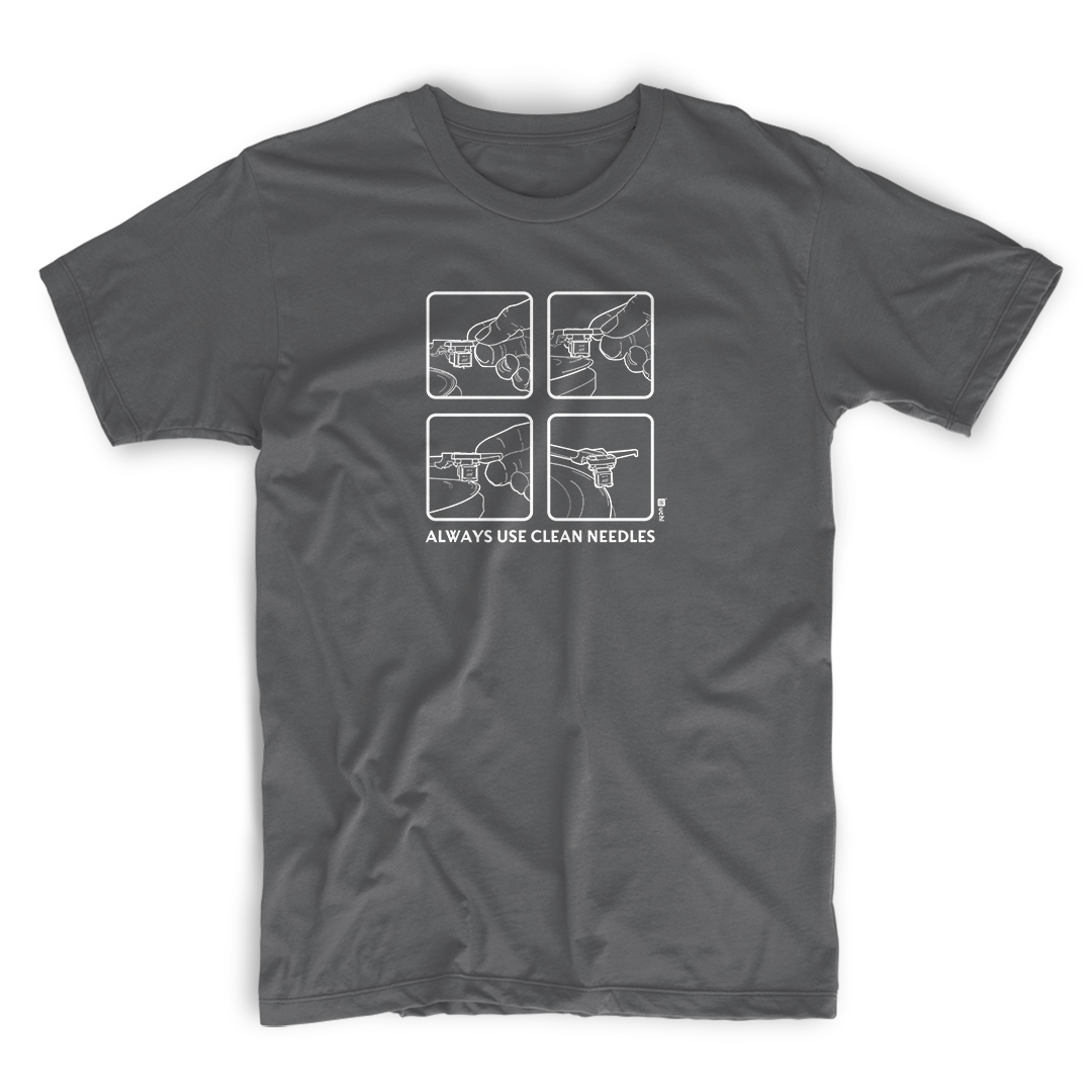 Always Use Clean Needles, one of the earliest and still the most popular designs.