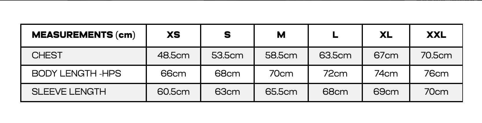 S 36″ M 40″ L 44″ XL 48″ 2XL 52″