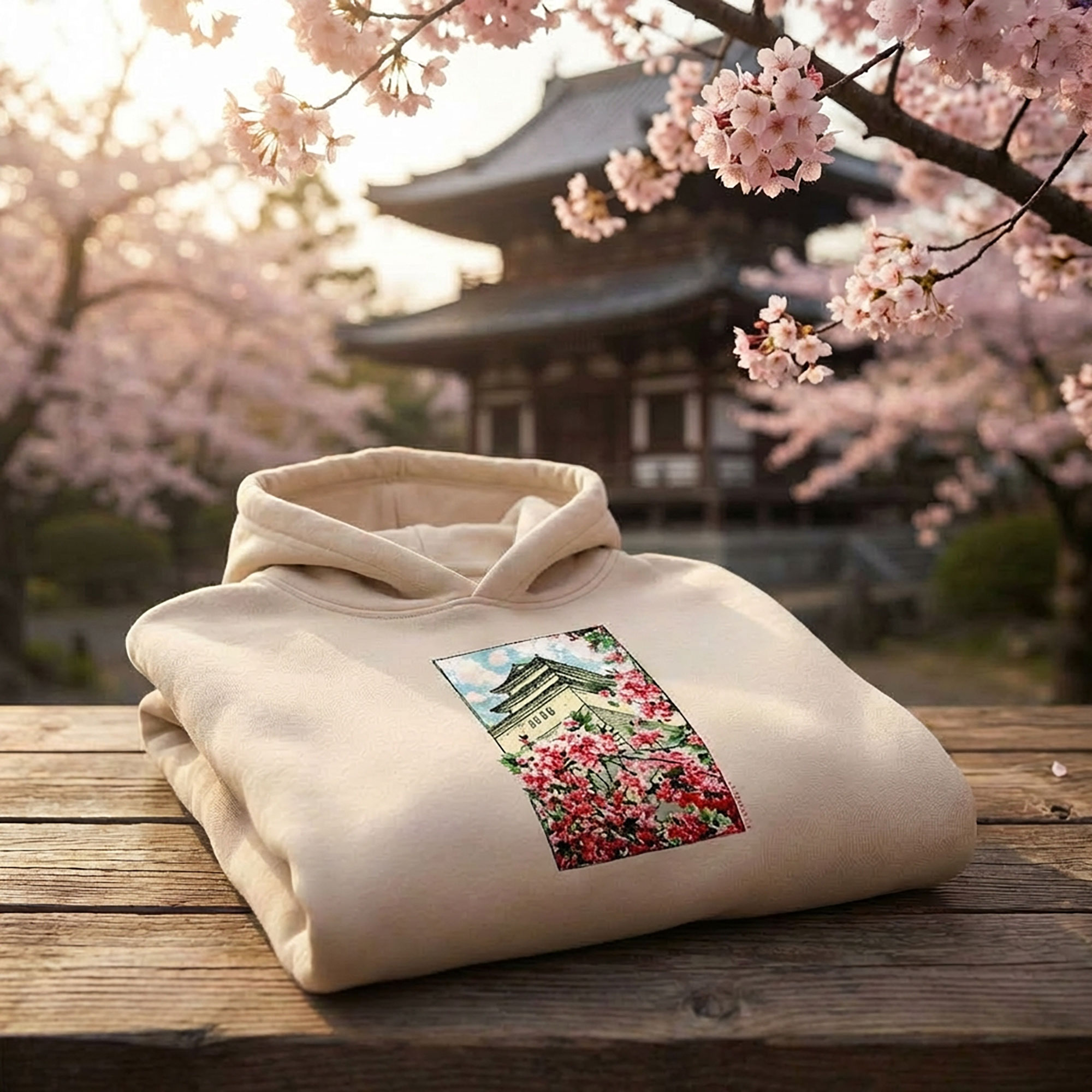 Temple on a hill where the cherry blossoms bloom